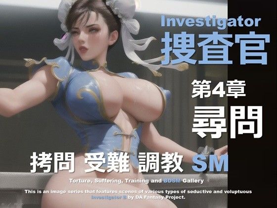 「女捜査官 B 第4章 〜尋問〜」は、青色のチャイナドレス風の格闘服、戦闘用リストバンド、白の強化レスリングブーツで武装した、白い布でシニヨンにまとめた輝く黒髪が特徴的な大人の魅力が漂う凛として美麗でかつ豊熟な女捜査官が敗北し、捕獲、拘束、緊縛、監禁された状態で厳しい尋問を受けるシーンをイメージしたSM画像集です。